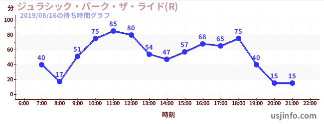 • ジュラシック・パーク・ザ・ライド(R)$B$N(B2019年08月16日の待ち時間