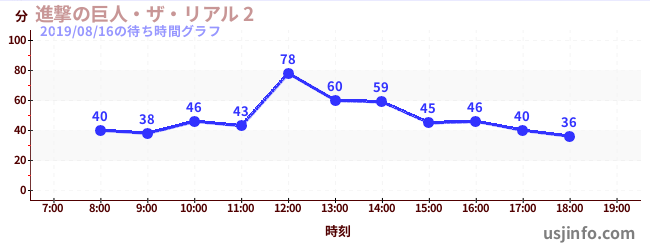 • 進撃の巨人・ザ・リアル 2$B$N(B2019年08月16日の待ち時間