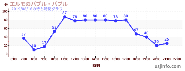 • エルモのバブル・バブル$B$N(B2019年08月16日の待ち時間