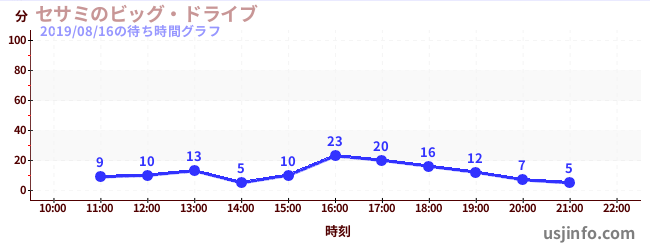 • セサミのビッグ・ドライブ$B$N(B2019年08月16日の待ち時間