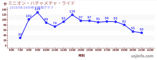 • ミニオン・ハチャメチャ・ライド$B$N(B2019年08月16日の待ち時間