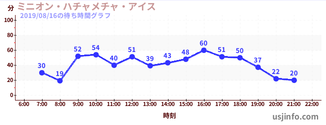 • ミニオン・ハチャメチャ・アイス$B$N(B2019年08月16日の待ち時間