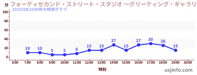 • フォーティセカンド・ストリート・スタジオ ~グリーティング・ギャラリー~ ピーナッツの仲間たち$B$N(B2019年08月16日の待ち時間