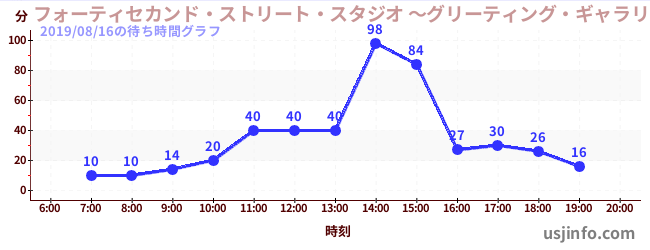 • フォーティセカンド・ストリート・スタジオ ~グリーティング・ギャラリー~ ミニオン$B$N(B2019年08月16日の待ち時間
