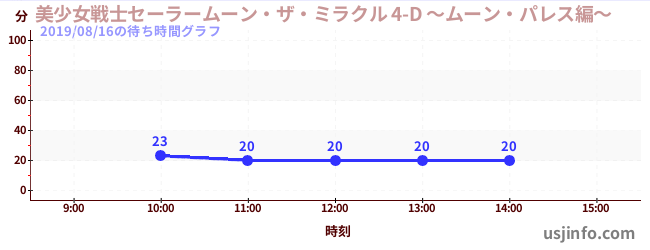 • 美少女戦士セーラームーン・ザ・ミラクル 4-D ~ムーン・パレス編~$B$N(B2019年08月16日の待ち時間