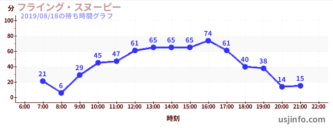 • フライング・スヌーピー$B$N(B2019年08月18日の待ち時間