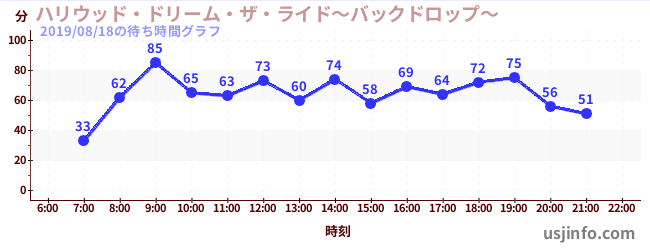 • ハリウッド・ドリーム・ザ・ライド〜バックドロップ〜$B$N(B2019年08月18日の待ち時間