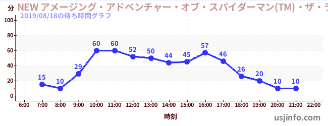 • NEW アメージング・アドベンチャー・オブ・スパイダーマン(TM)・ザ・ライド 4K3D$B$N(B2019年08月18日の待ち時間