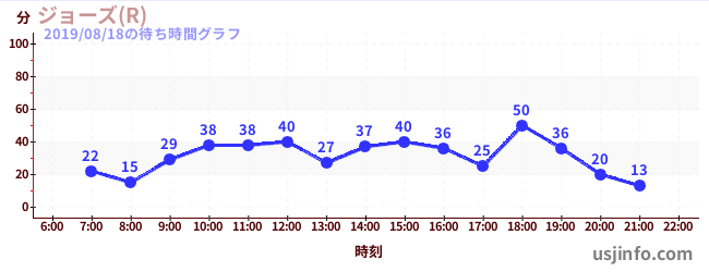 • ジョーズ(R)$B$N(B2019年08月18日の待ち時間