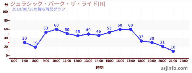 • ジュラシック・パーク・ザ・ライド(R)$B$N(B2019年08月18日の待ち時間