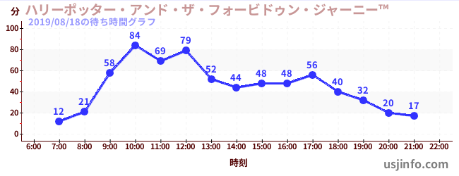 • ハリーポッター・アンド・ザ・フォービドゥン・ジャーニー™$B$N(B2019年08月18日の待ち時間