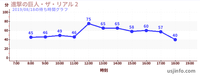 • 進撃の巨人・ザ・リアル 2$B$N(B2019年08月18日の待ち時間