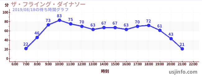 • ザ・フライング・ダイナソー$B$N(B2019年08月18日の待ち時間