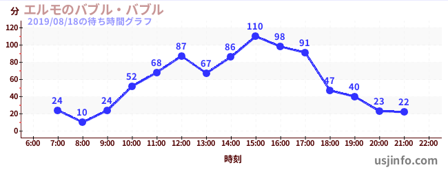 • エルモのバブル・バブル$B$N(B2019年08月18日の待ち時間