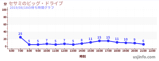 • セサミのビッグ・ドライブ$B$N(B2019年08月18日の待ち時間