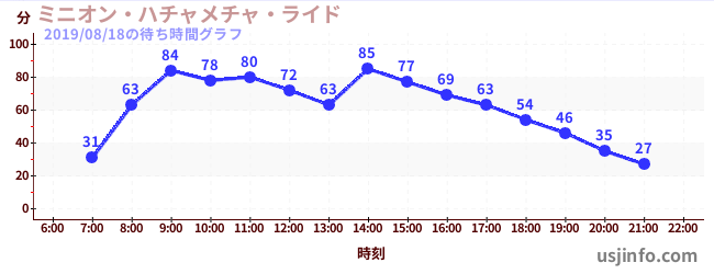 • ミニオン・ハチャメチャ・ライド$B$N(B2019年08月18日の待ち時間