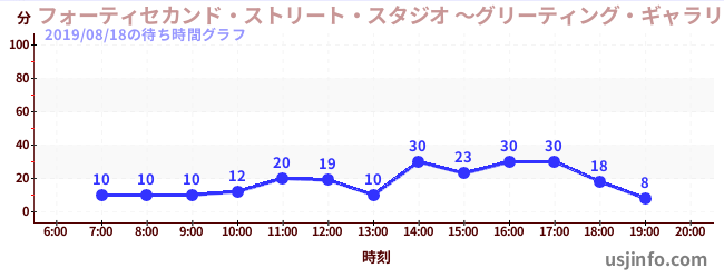• フォーティセカンド・ストリート・スタジオ ~グリーティング・ギャラリー~ ピーナッツの仲間たち$B$N(B2019年08月18日の待ち時間