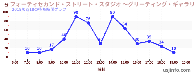 • フォーティセカンド・ストリート・スタジオ ~グリーティング・ギャラリー~ ミニオン$B$N(B2019年08月18日の待ち時間
