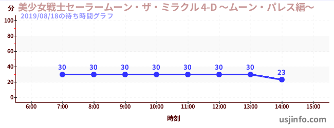 • 美少女戦士セーラームーン・ザ・ミラクル 4-D ~ムーン・パレス編~$B$N(B2019年08月18日の待ち時間