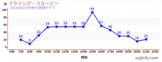 • フライング・スヌーピー$B$N(B2019年08月19日の待ち時間