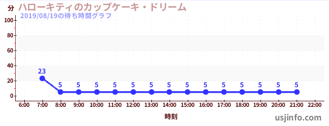 • ハローキティのカップケーキ・ドリーム$B$N(B2019年08月19日の待ち時間