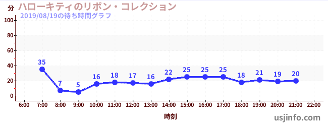 • ハローキティのリボン・コレクション$B$N(B2019年08月19日の待ち時間