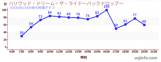 • ハリウッド・ドリーム・ザ・ライド〜バックドロップ〜$B$N(B2019年08月19日の待ち時間