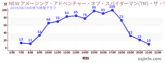 • NEW アメージング・アドベンチャー・オブ・スパイダーマン(TM)・ザ・ライド 4K3D$B$N(B2019年08月19日の待ち時間