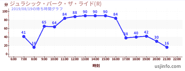 • ジュラシック・パーク・ザ・ライド(R)$B$N(B2019年08月19日の待ち時間
