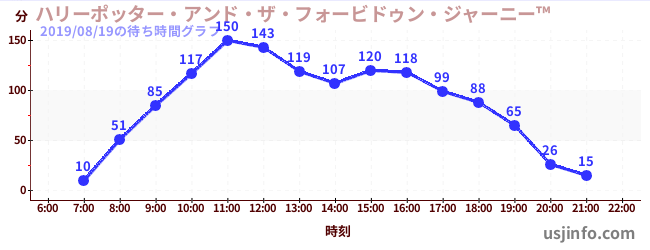 • ハリーポッター・アンド・ザ・フォービドゥン・ジャーニー™$B$N(B2019年08月19日の待ち時間