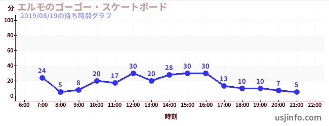 • エルモのゴーゴー・スケートボード$B$N(B2019年08月19日の待ち時間