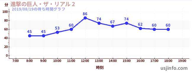 • 進撃の巨人・ザ・リアル 2$B$N(B2019年08月19日の待ち時間