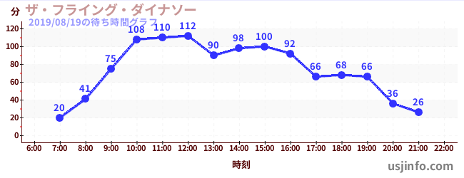 • ザ・フライング・ダイナソー$B$N(B2019年08月19日の待ち時間