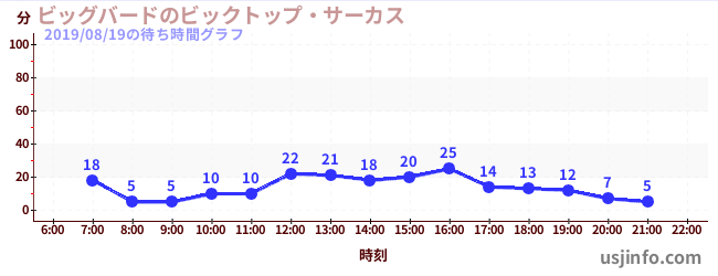 • ビッグバードのビックトップ・サーカス$B$N(B2019年08月19日の待ち時間