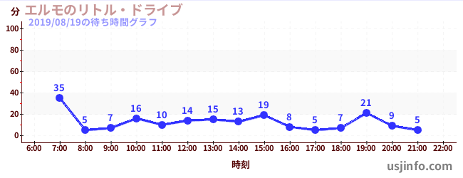 • エルモのリトル・ドライブ$B$N(B2019年08月19日の待ち時間