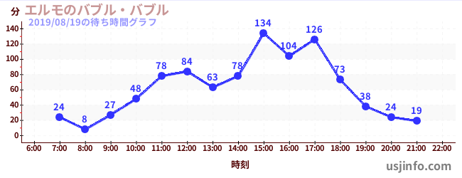 • エルモのバブル・バブル$B$N(B2019年08月19日の待ち時間