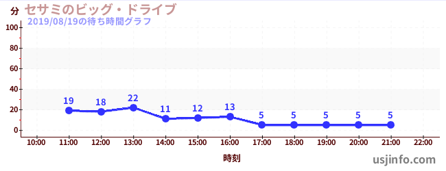 • セサミのビッグ・ドライブ$B$N(B2019年08月19日の待ち時間