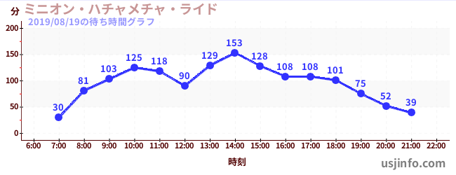 • ミニオン・ハチャメチャ・ライド$B$N(B2019年08月19日の待ち時間