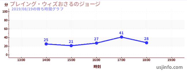 • プレイング・ウィズおさるのジョージ$B$N(B2019年08月19日の待ち時間