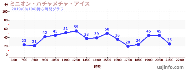 • ミニオン・ハチャメチャ・アイス$B$N(B2019年08月19日の待ち時間