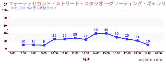 • フォーティセカンド・ストリート・スタジオ ~グリーティング・ギャラリー~ ピーナッツの仲間たち$B$N(B2019年08月19日の待ち時間