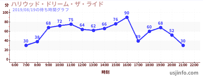• ハリウッド・ドリーム・ザ・ライド$B$N(B2019年08月19日の待ち時間