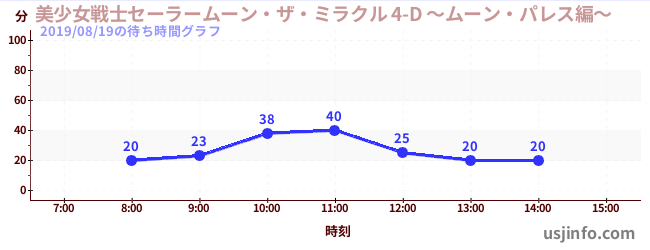 • 美少女戦士セーラームーン・ザ・ミラクル 4-D ~ムーン・パレス編~$B$N(B2019年08月19日の待ち時間