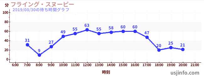 • フライング・スヌーピー$B$N(B2019年08月30日の待ち時間