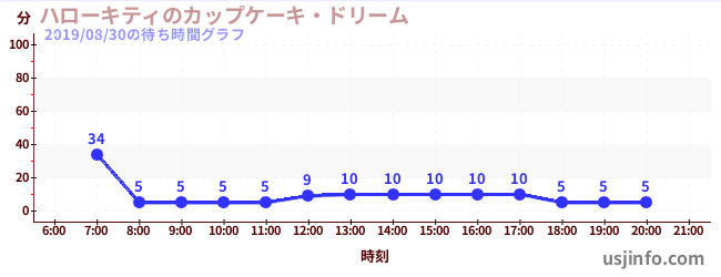 • ハローキティのカップケーキ・ドリーム$B$N(B2019年08月30日の待ち時間
