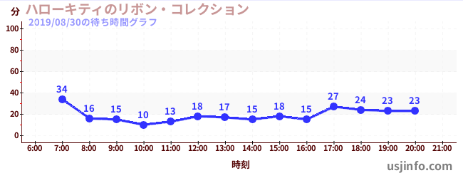 • ハローキティのリボン・コレクション$B$N(B2019年08月30日の待ち時間