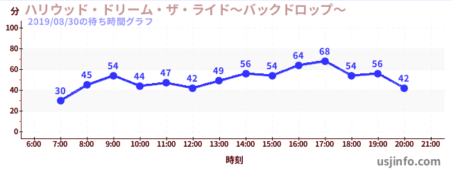 • ハリウッド・ドリーム・ザ・ライド〜バックドロップ〜$B$N(B2019年08月30日の待ち時間