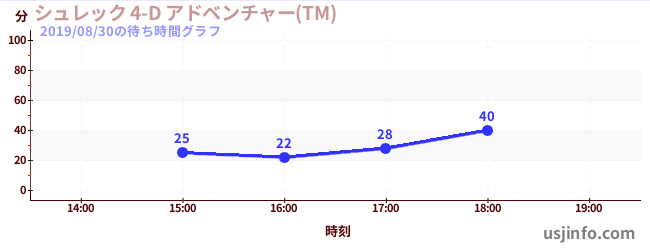 • シュレック 4-D アドベンチャー(TM)$B$N(B2019年08月30日の待ち時間