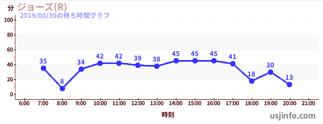 • ジョーズ(R)$B$N(B2019年08月30日の待ち時間