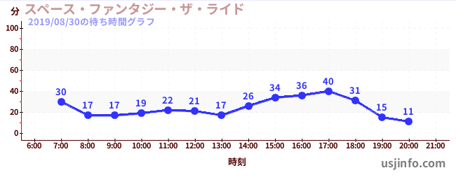 • スペース・ファンタジー・ザ・ライド$B$N(B2019年08月30日の待ち時間